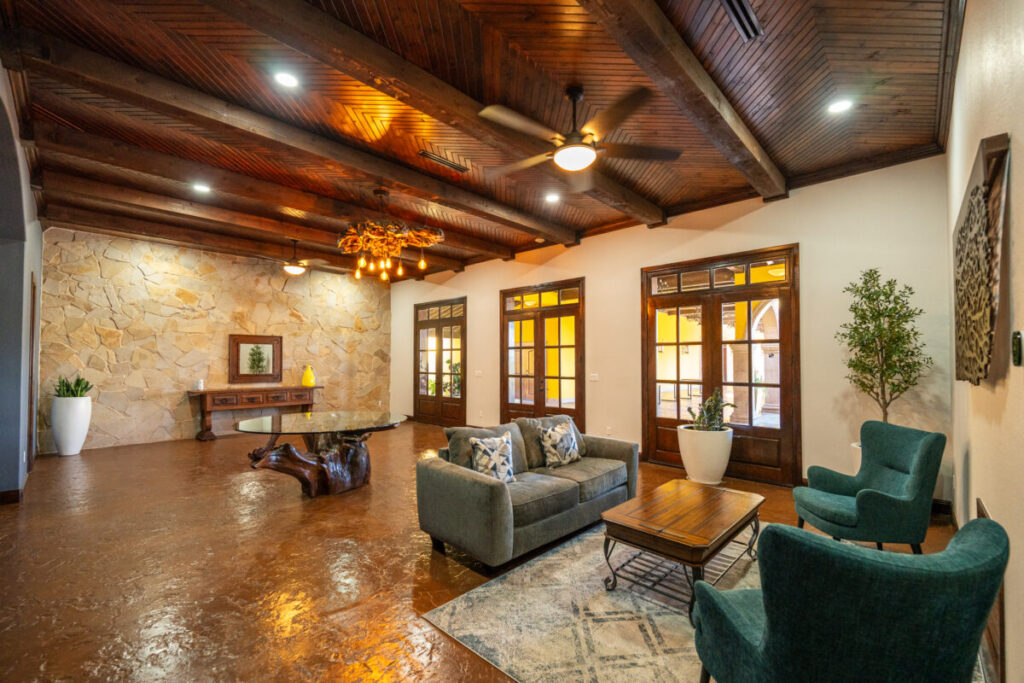 If you are looking for a bit of culturally rich old-world charm, Hacienda San Martin is the venue for you. You’ll drive past the iron gates at the beginning of the long, oak-lined drive leading up to the round-about driveway of Hacienda San Martin. The hacienda was built inspired by the architecture of haciendas found in Guadalajara, Mexico to create a unique atmosphere in the Rio Grande Valley. The property is surrounded by acres of grapefruit orchards and has been designed with the outdoor ambiance in mind.